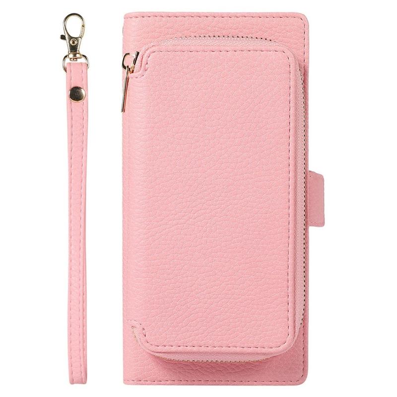 - Kortväskan med dragkedja och läderfodralet för mobiltelefon med litchi-textur kan delas för användning och fästas ihop med magnetism