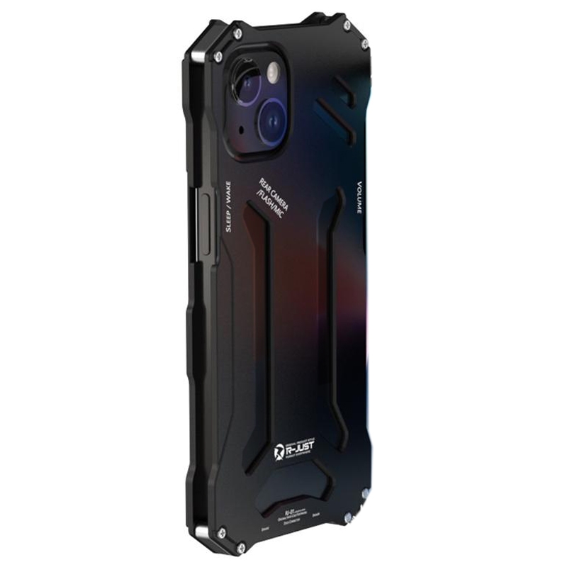 R-JUST Mechanical Armor Metal Stötsäkert fodral för iPhone 14 Plus Anti-Fall telefonskal ihåligt design telefonskydd