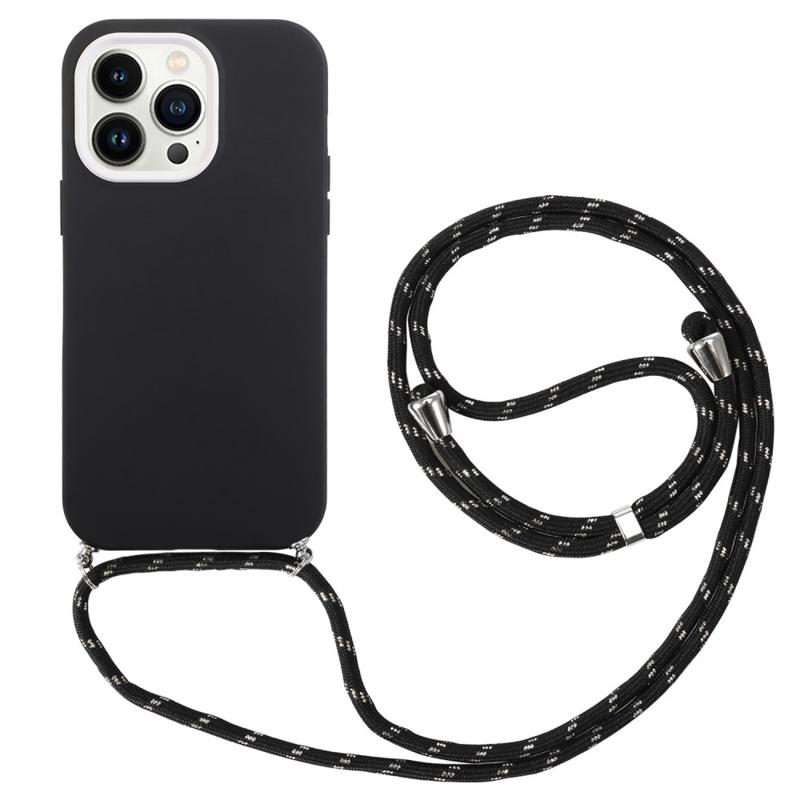 • För iPhone 14 Pro 3-i-1 PC-ram + Linsring + TPU-skal Anti-droppskydd med lång halsrem