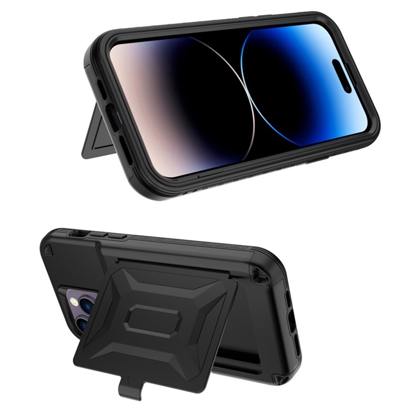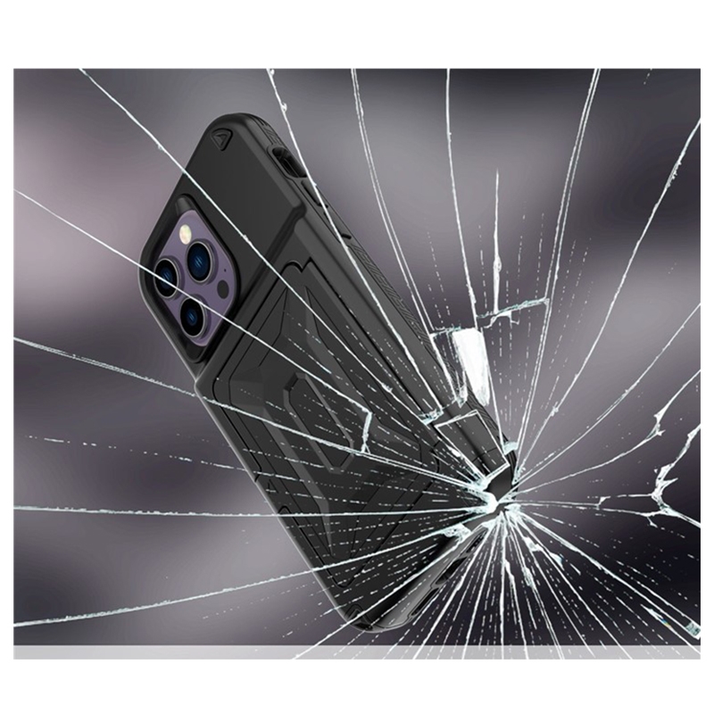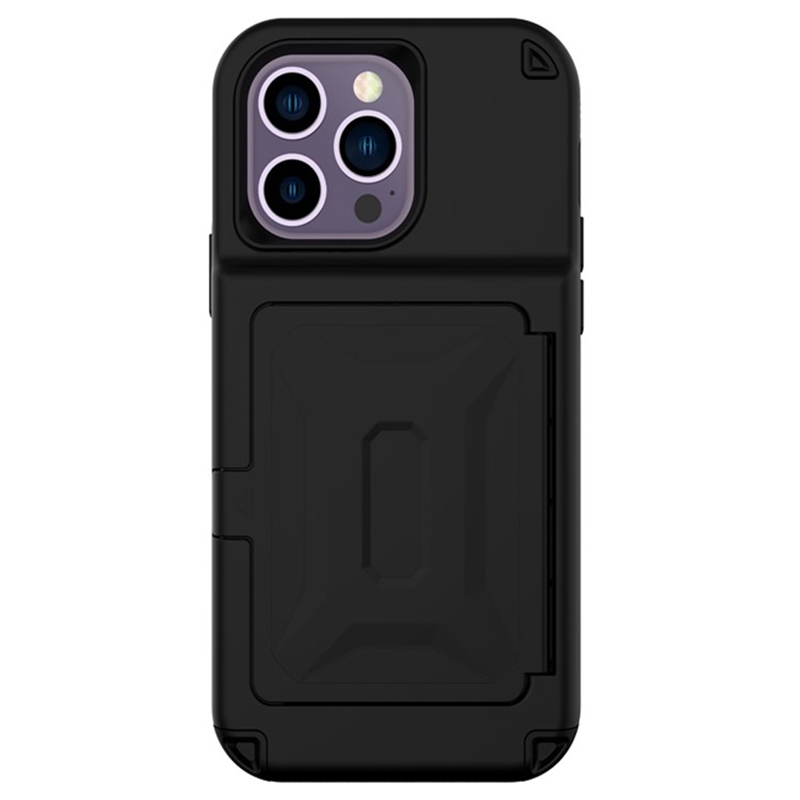 iPhone 14 Pro Hybridskal med Gömd Spegel och Korthållare - Svart