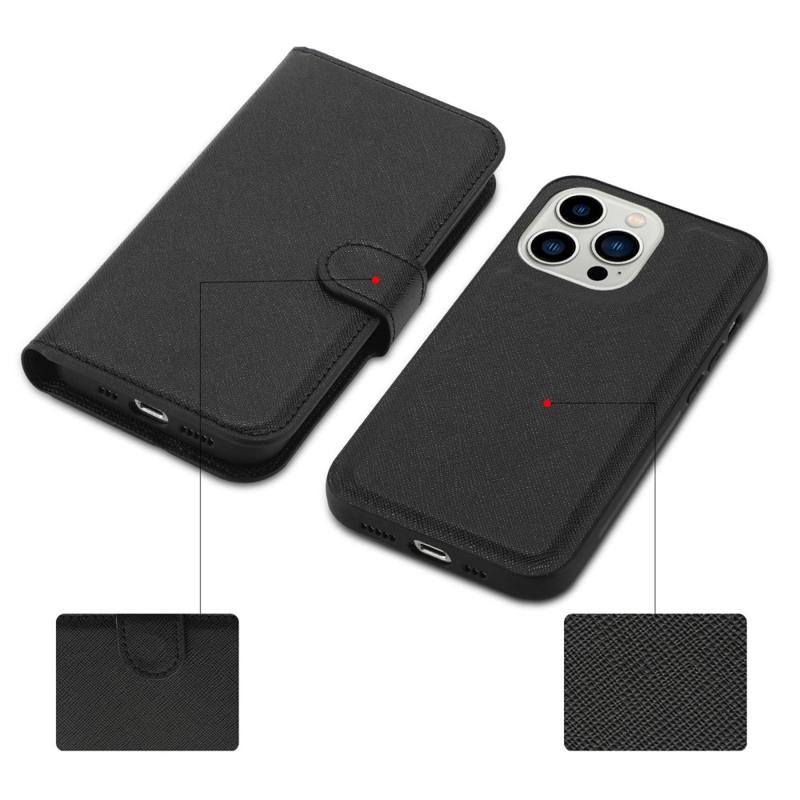 För iPhone 14 Pro Plånboksfodral i PU-läder med Avtagbart TPU-skal, Fallsäkert, Flip, med Stativ