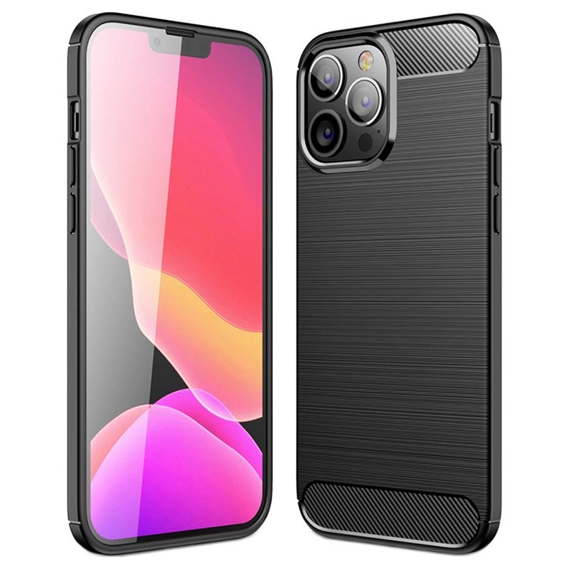 Borstat TPU Skal till iPhone 14 Pro Max - Kolfiber