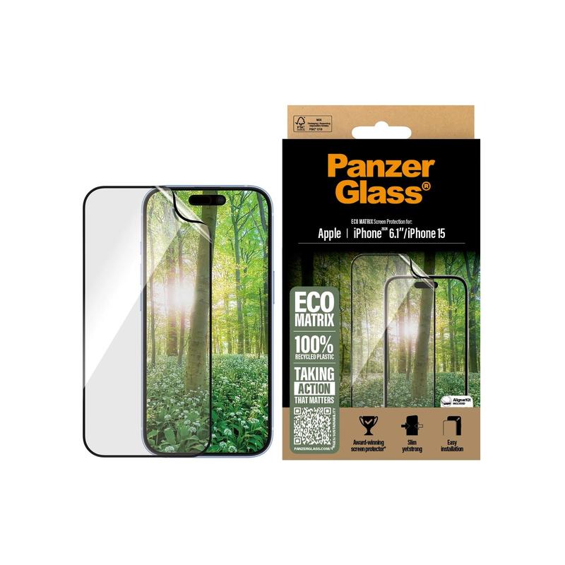 PanzerGlass Eco Matrix Ultra-Wide Fit skärmskydd med EasyAligner för iPhone 15, iPhone 16 - 100% återvunnet