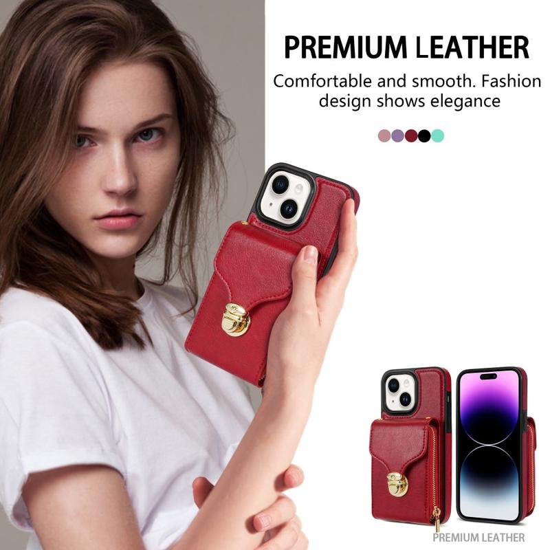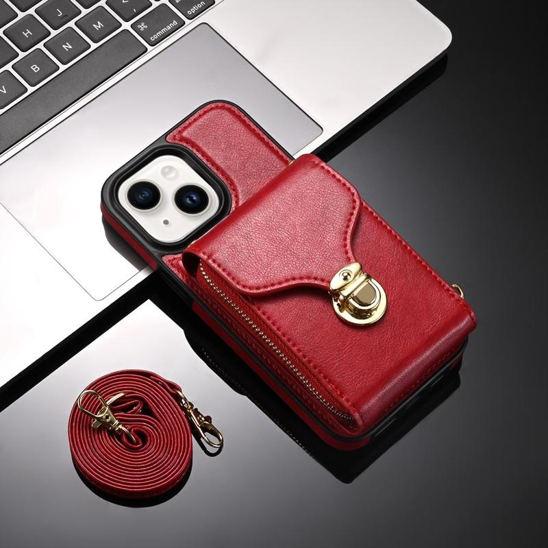 Allt-i-ett skyddande TPU-skal med plånbok och rem för iPhone 15