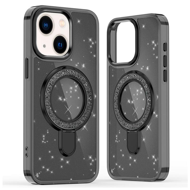 Glitterskal med kickstand för iPhone 15 - MagSafe-kompatibelt TPU + PC Hybrid Kickstand-skal