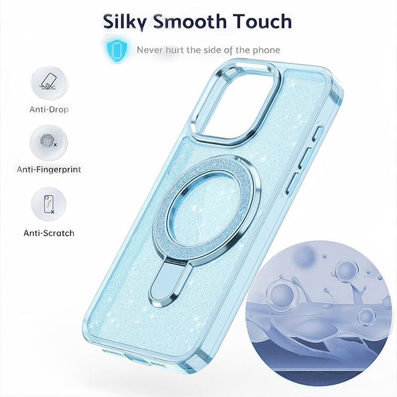 Förena stil och skydd med iPhone 15 glitterfodral, som kombinerar elegant glitter med pålitlig hållbarhet i vardagen. Tillverkat av högkvalitativa material och utrustat med ett inbyggt kickstand i metallring, håller detta fodral din telefon säker, funktionell och modern hela dagen lång.