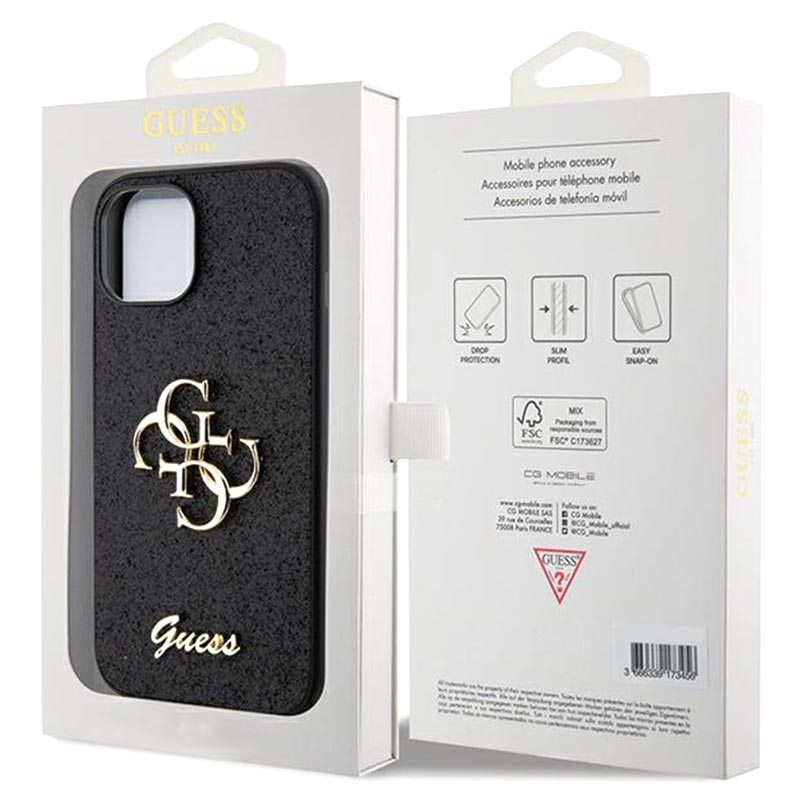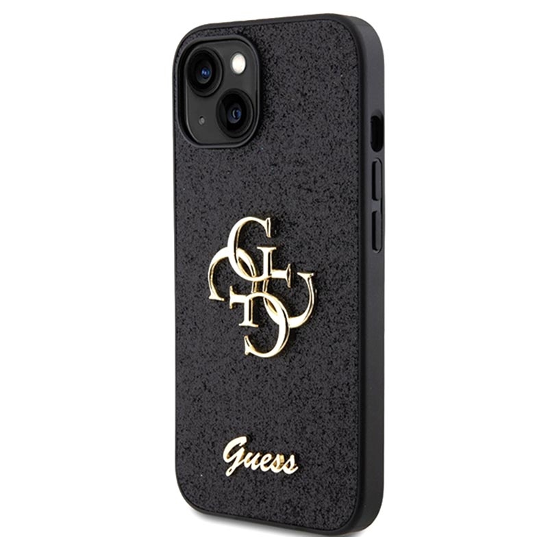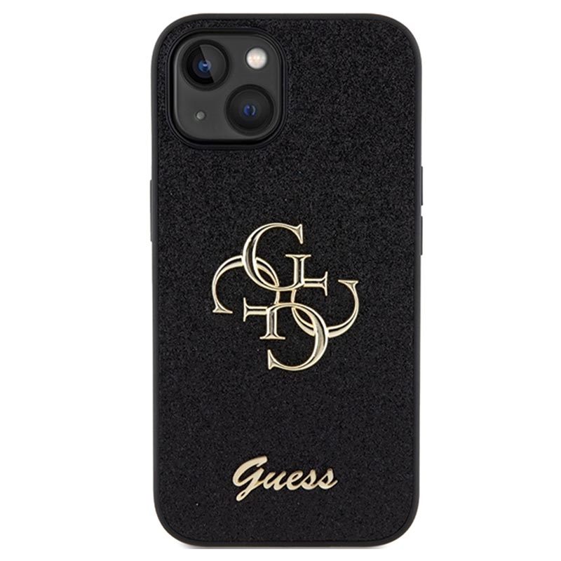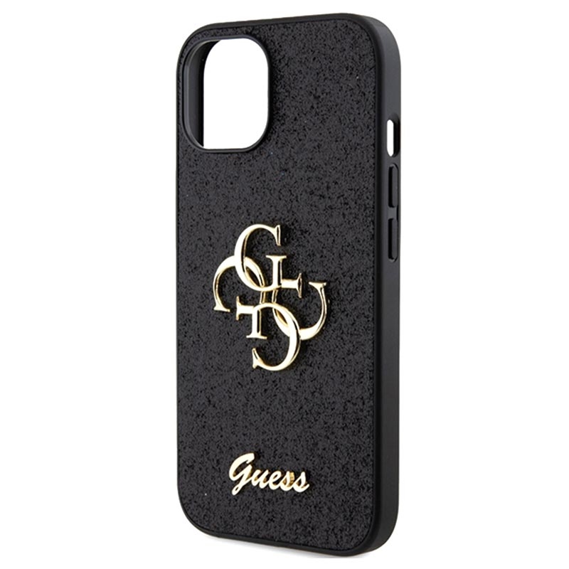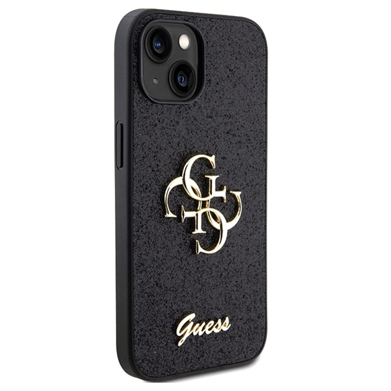 iPhone 15 Guess Fixed Glitter 4G Metal Logo Skal - Svart
