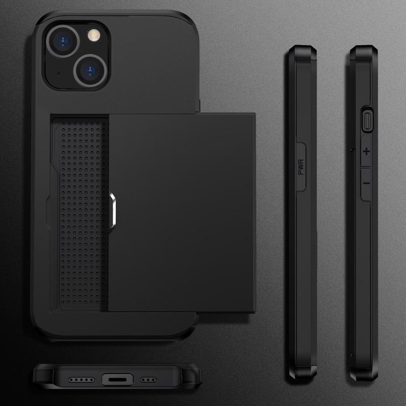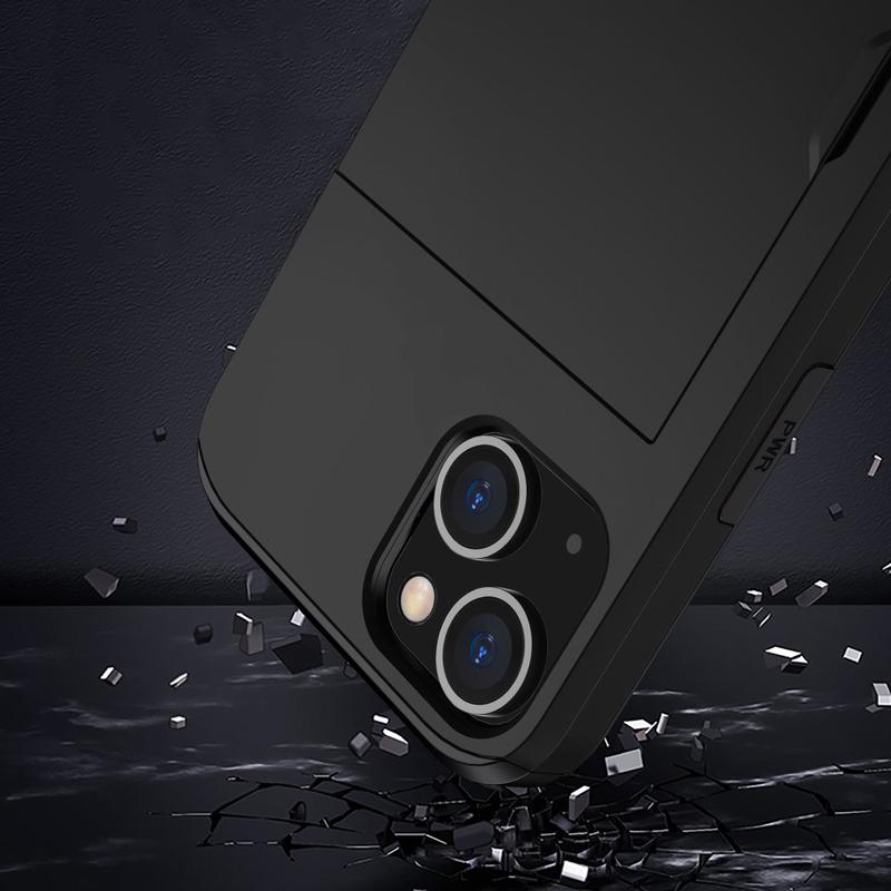 iPhone 15 Hybrid Skal med Glidkortshållare - Svart