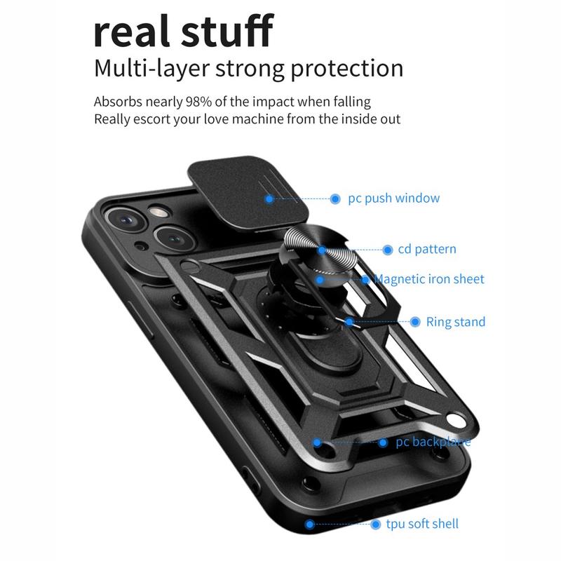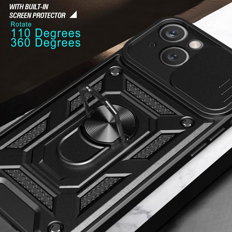- Roterande ringhybridfodral med kameraavskärmning för iPhone 15