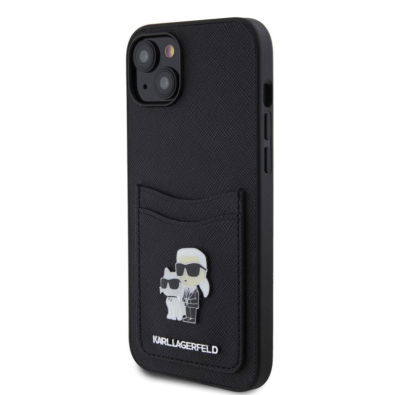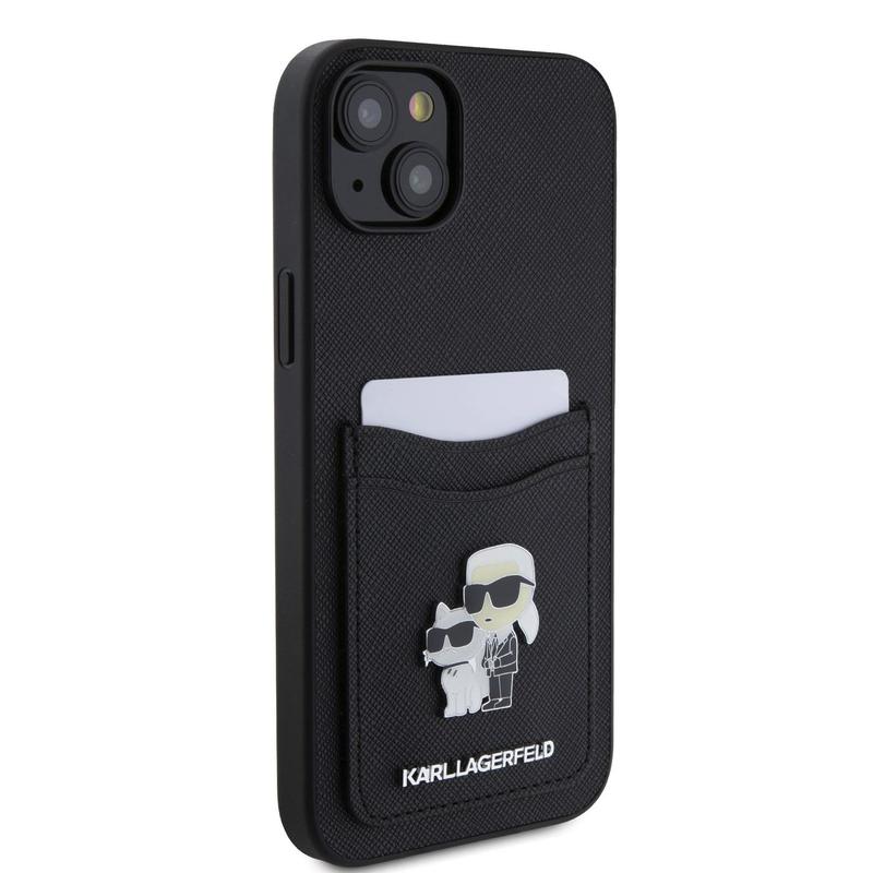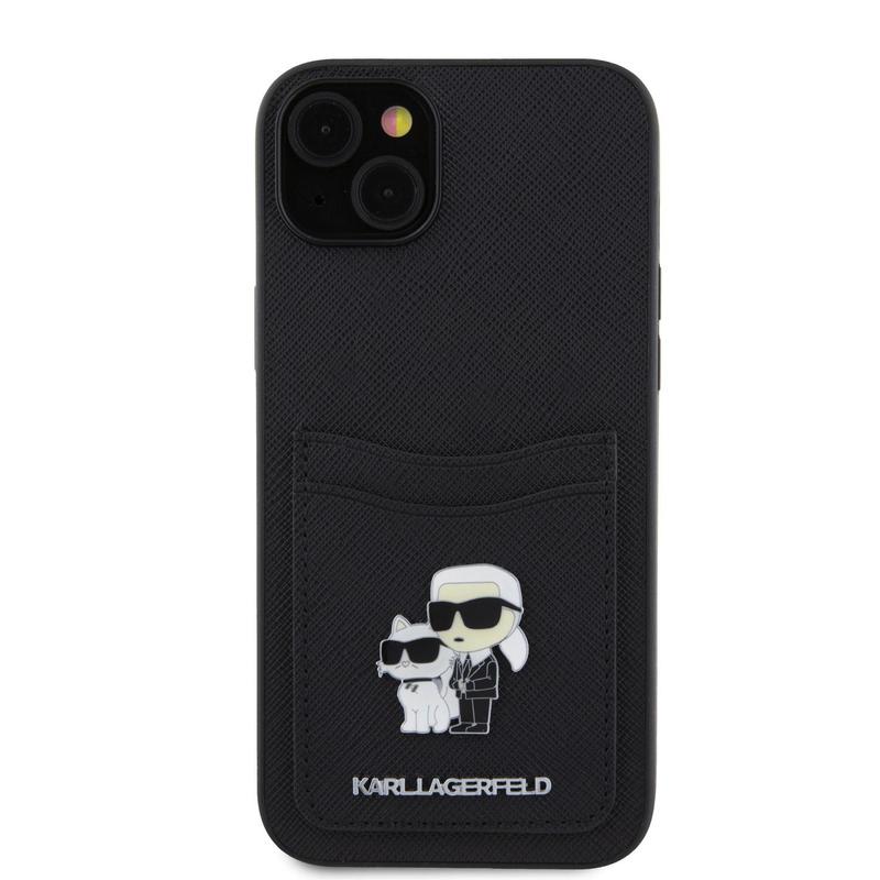 Karl Lagerfeld Saffiano fodral med kortplats i metall Karl & Choupette för iPhone 15