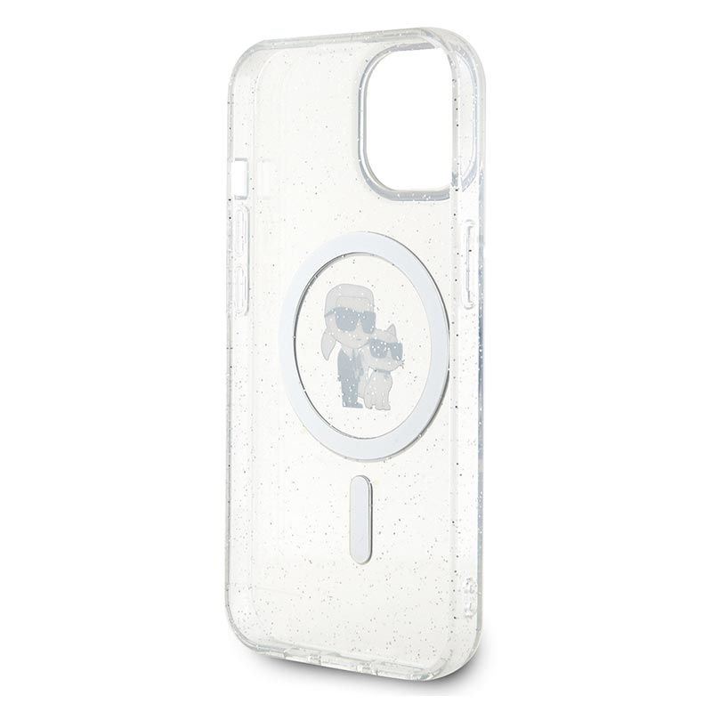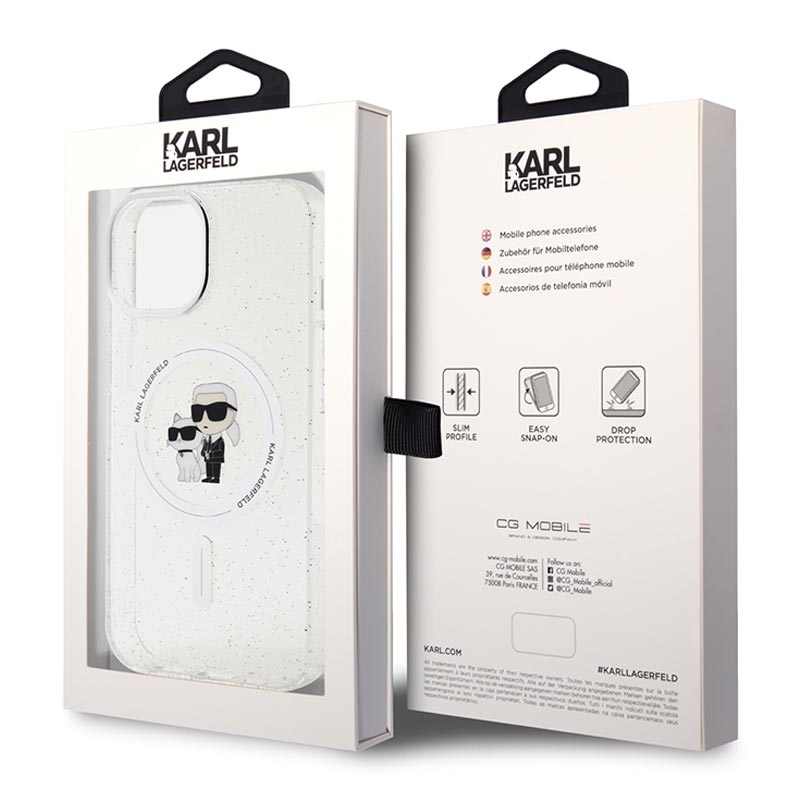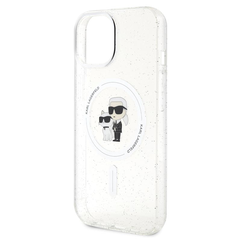 iPhone 15 Karl Lagerfeld IML Glitter Karl & Choupette MagSafe Skal - Klar