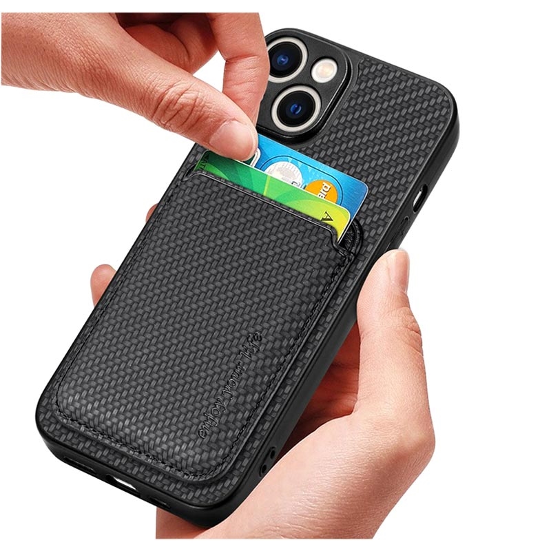 Magnetisk Skal med Korthållare till iPhone 15 - Kolfiber