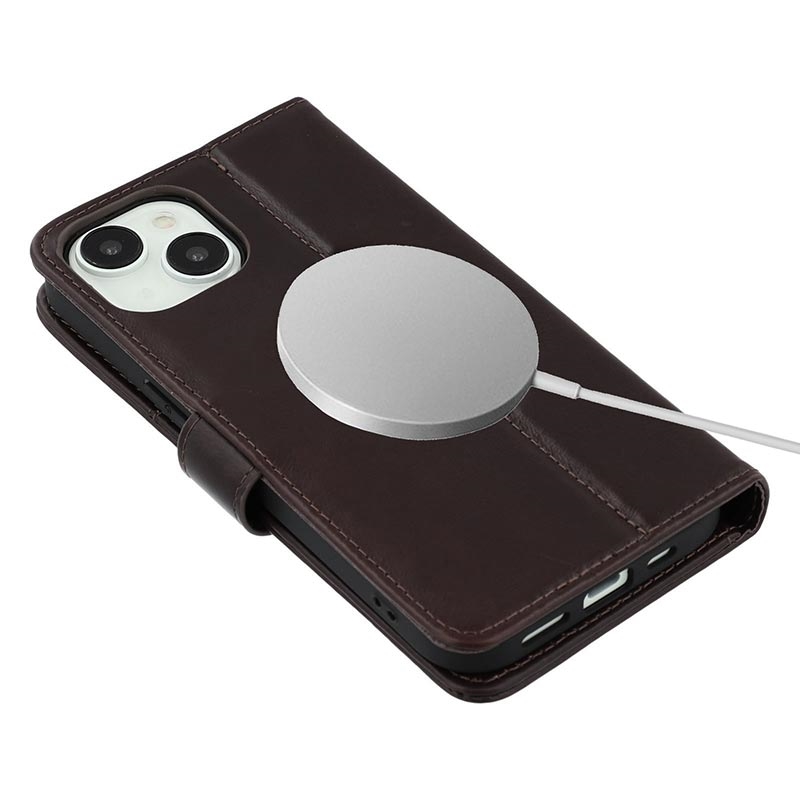 MyTPhone CardMate Premium läder plånboksfodral för iPhone 15 - Stativ funktion, korthållare, stöd för trådlös laddning, 2x skärmskydd