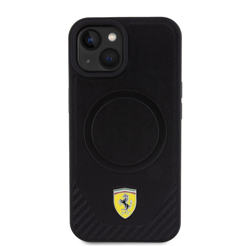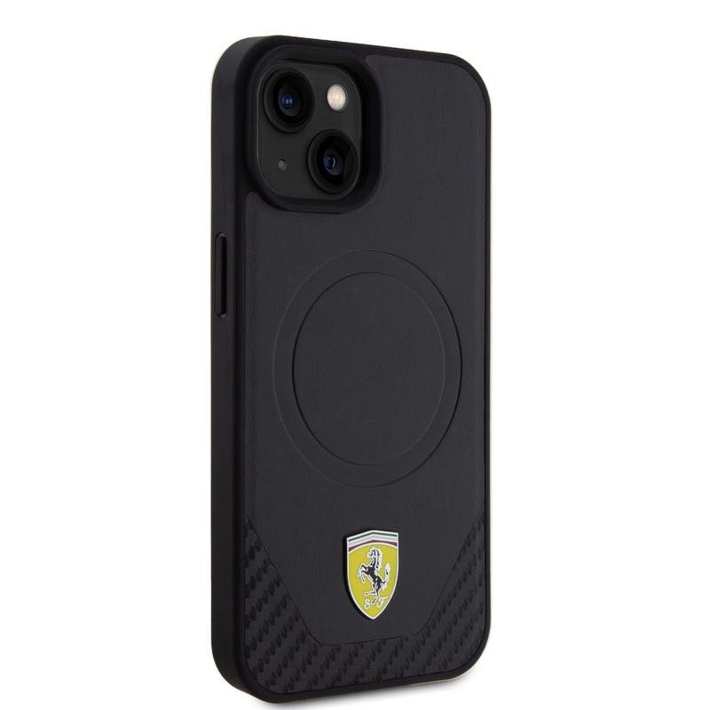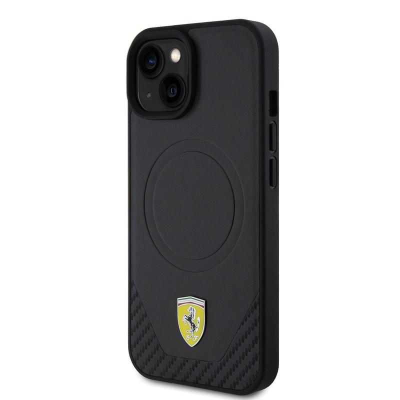Ferrari Carbon Metal Logo Mag Fodral för iPhone 15 Plus