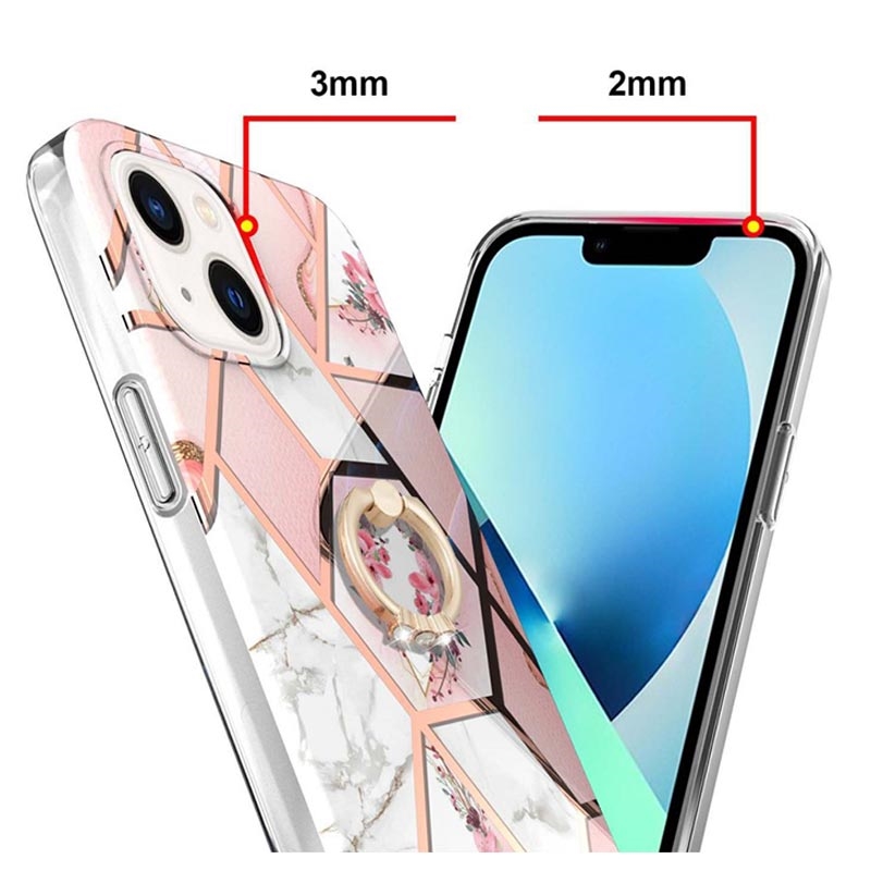 Marble Pattern IMD TPU-skal med Ringhållare till iPhone 15 Plus