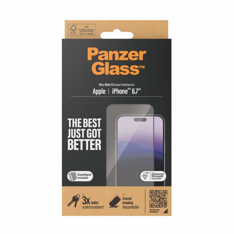 - Ultra-Wide Fit skärmskydd i härdat glas till iPhone 15 Plus av PanzerGlass