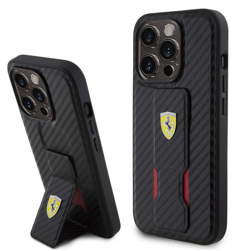Ferrari Carbon Grip Stand-fodral för iPhone 15 Pro Max