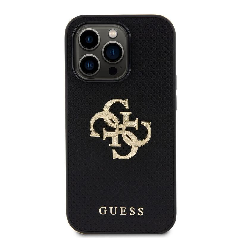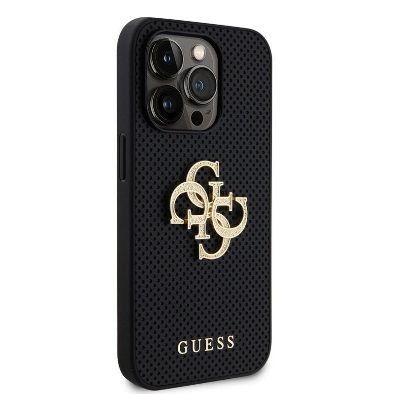 iPhone 15 Pro Max Guess Perforerad 4G Glitter Logo Skal - Svart