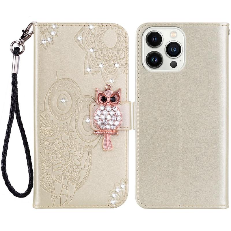 - Plånboksfodral med uggla och strass för iPhone 15 Pro