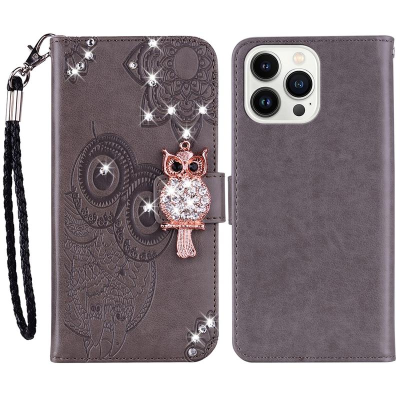 - Plånboksfodral med uggla och strass för iPhone 15 Pro Max