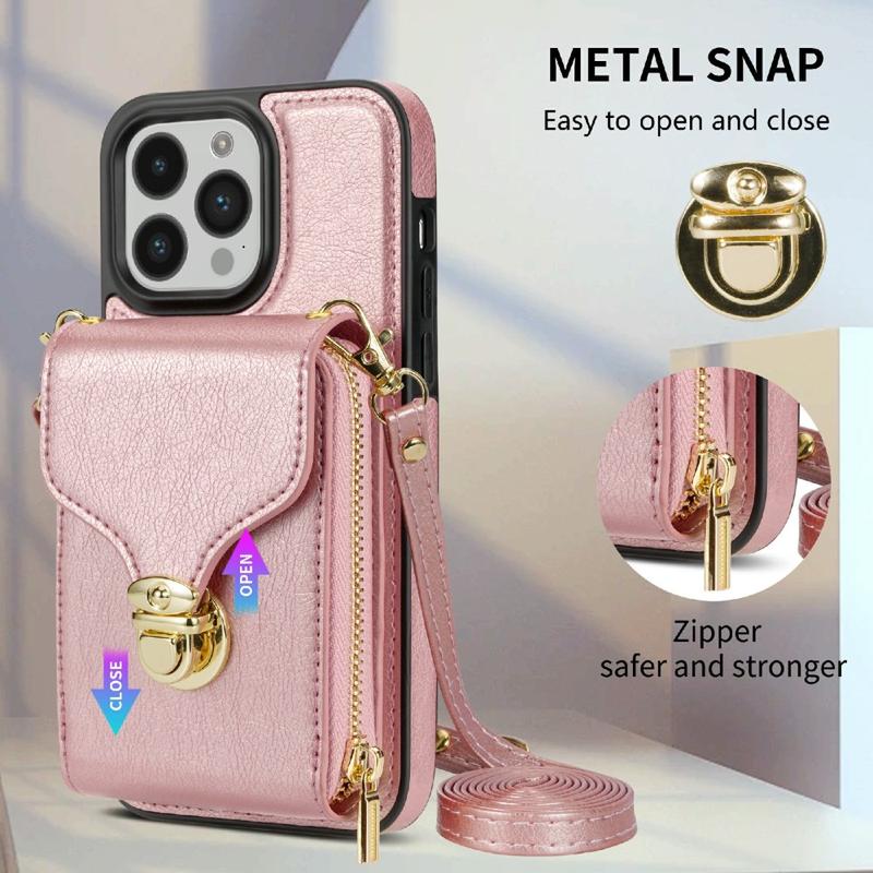 Allt-i-ett skyddande TPU-fodral med plånbok och rem för iPhone 15 Pro