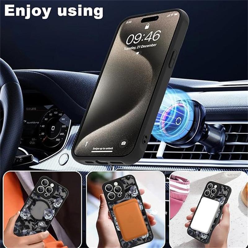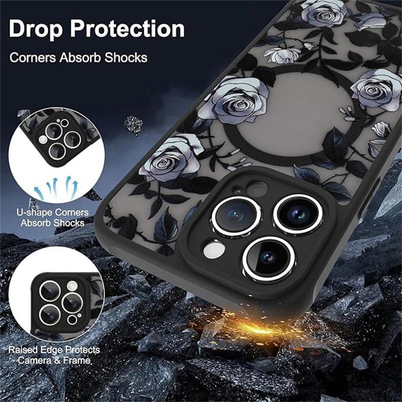 MagSafe-fodralet Rose Flower för iPhone 15 Pro Max erbjuder en perfekt blandning av vintage charm och modern innovation. Med sin hållbara hybridkonstruktion, anti-fingeravtrycksfinish och full MagSafe-kompatibilitet skyddar det din telefon samtidigt som den är snygg, tunn och funktionell.