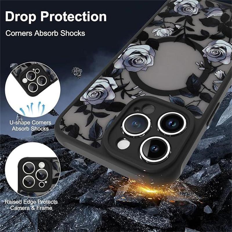 MagSafe-fodralet Rose Flower för iPhone 15 Pro erbjuder en perfekt blandning av vintage charm och modern innovation. Med sin hållbara hybridkonstruktion, anti-fingeravtrycksfinish och full MagSafe-kompatibilitet skyddar det din telefon samtidigt som den är snygg, tunn och funktionell.