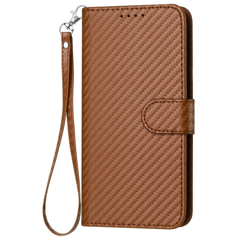 Premium plånboksfodral med rem för iPhone 15 Pro Max - kolfiberstruktur