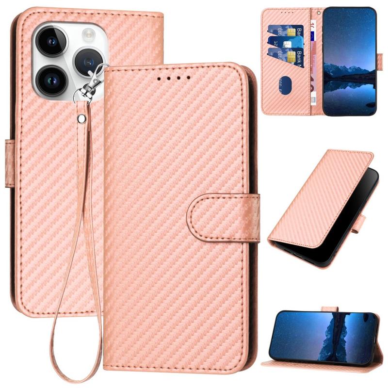 Premium plånboksfodral med rem för iPhone 15 Pro Max - kolfiberstruktur