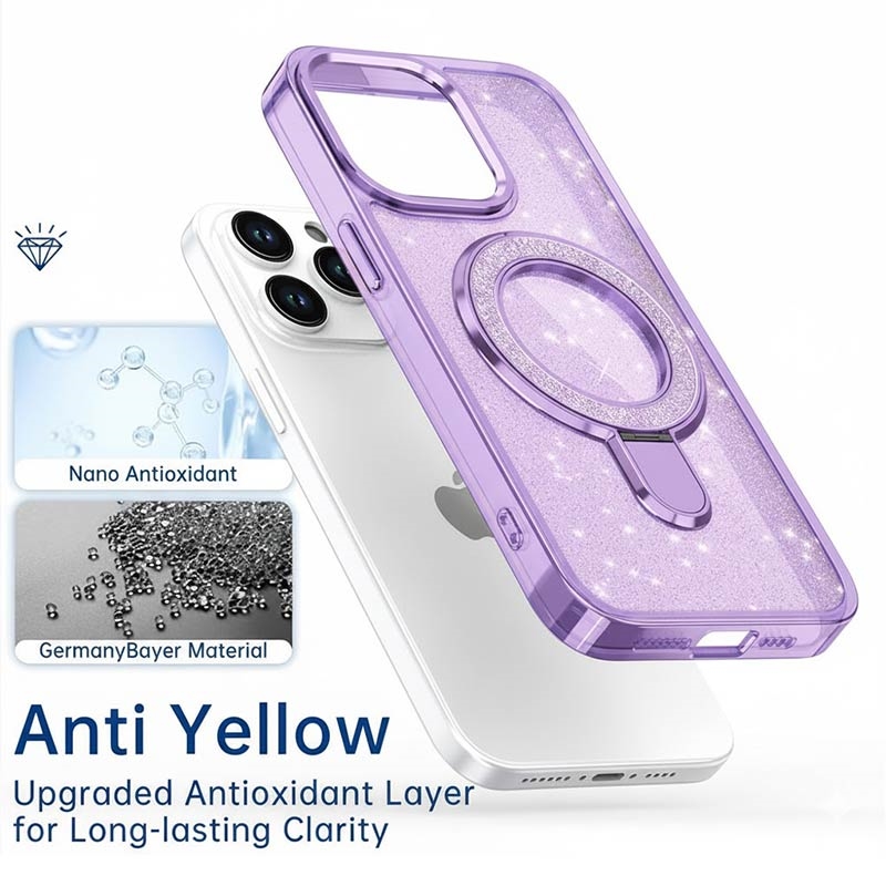 Glitterskal med kickstand för iPhone 15 Pro - MagSafe-kompatibelt TPU + PC Hybrid Kickstand-skal