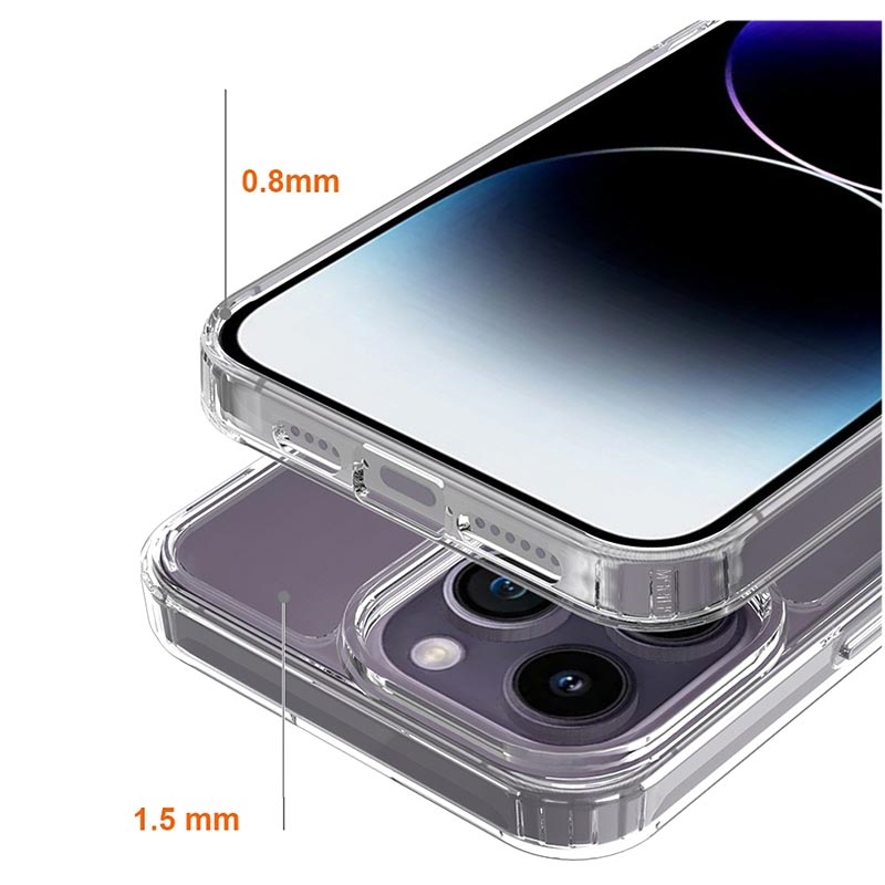 Detta kvalitativa Anti-Shock hybridskal för iPhone 15 Pro Max skyddar baksidan och sidorna mot stötar, slag och repor. Skalet är perfekt format för att följa konturerna av din iPhone 15 Pro Max, medan den genomskinliga baksidan låter den naturliga skönheten skina igenom.