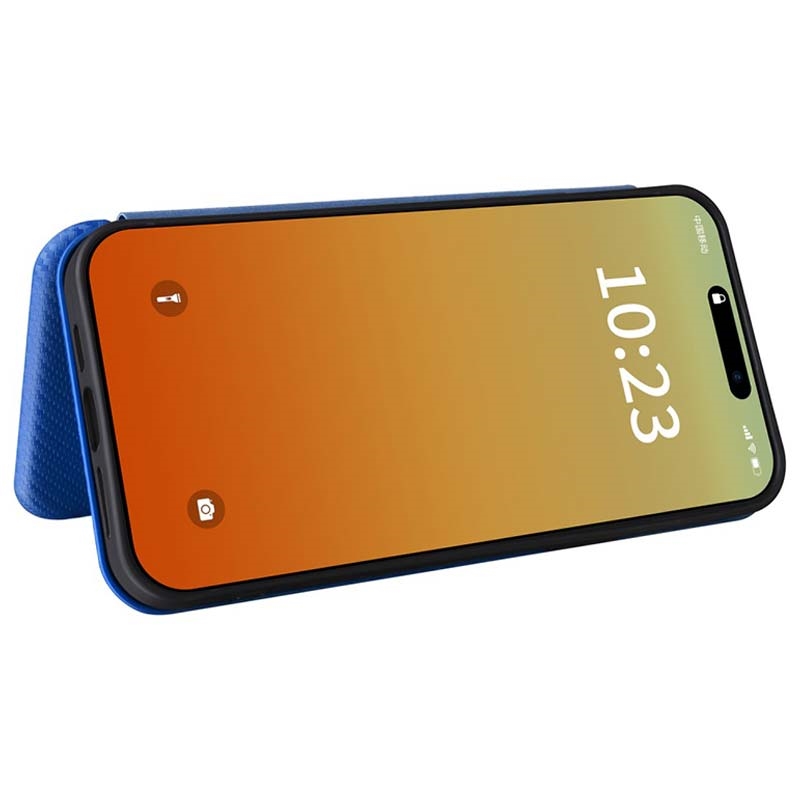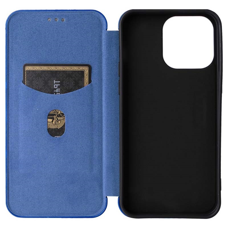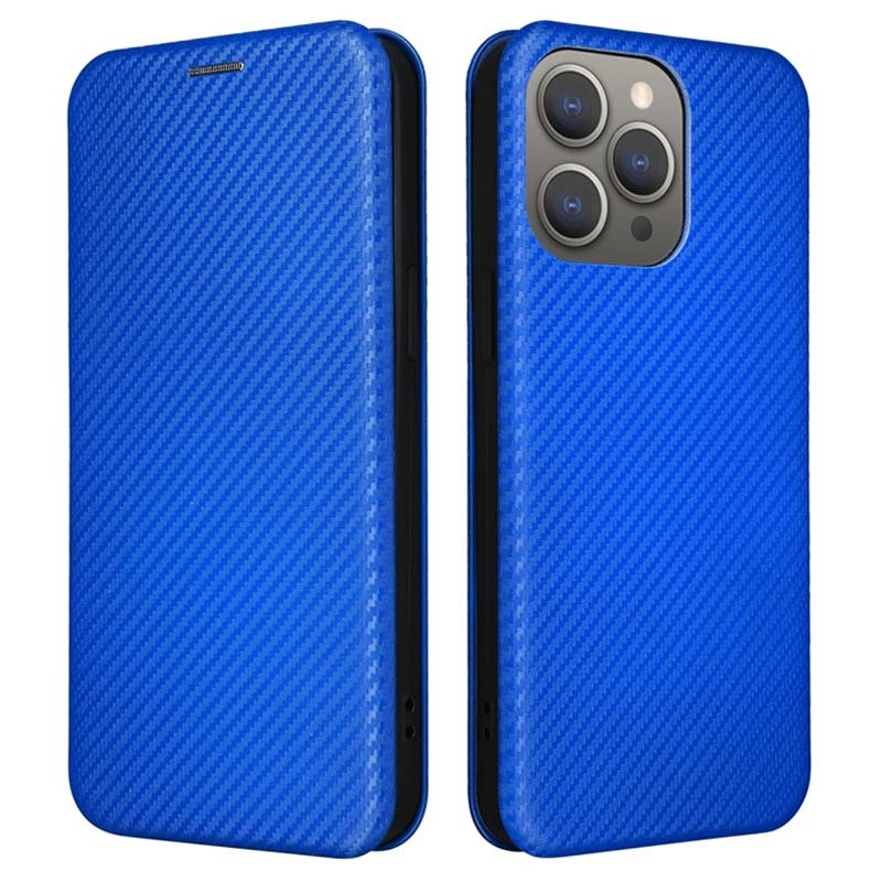 iPhone 15 Pro Max Flipfodral - Kolfiber - Blå