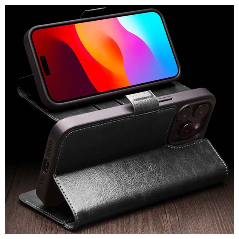 Qialino Classic Läder Plånboksfodral till iPhone 15 Pro Max