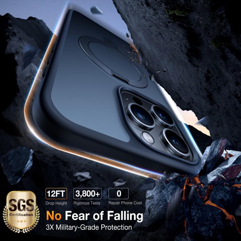 Torras Upro Ostand Matte Skal för iPhone 15 Pro - MagSafe-grepp, inbyggt sparkstativ, droppsäkert skydd
