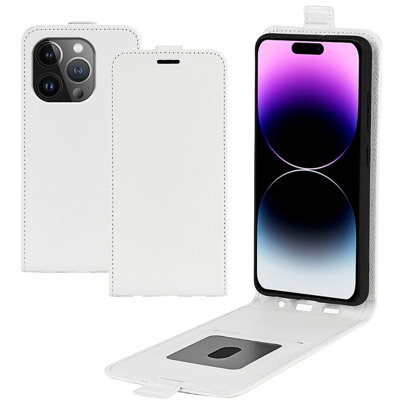 iPhone 15 Pro Vertikalt Flipfodral med Korthållare - Vit