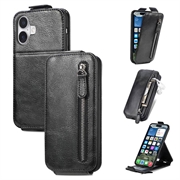 - Elegant vertikalt flipfodral med blixtlåsficka till iPhone 16