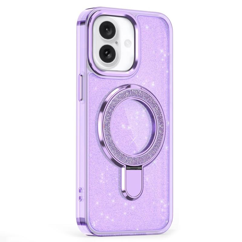 Glitterskal med kickstand för iPhone 16 - MagSafe-kompatibelt TPU + PC Hybrid Kickstand-skal