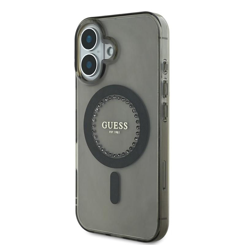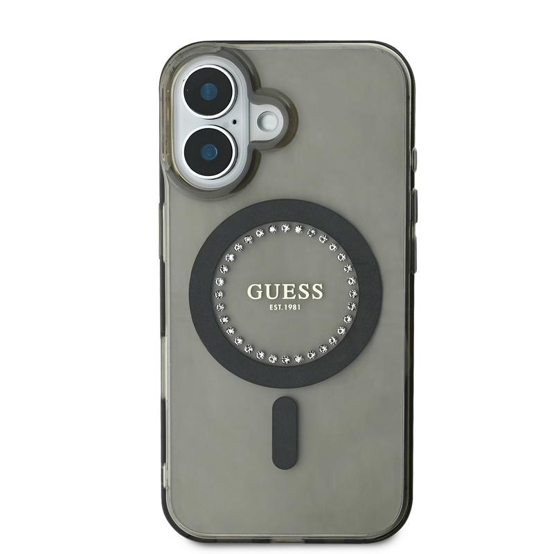 Guess IML Rhinestones Ring Skal för iPhone 16 - MagSafe-kompatibel