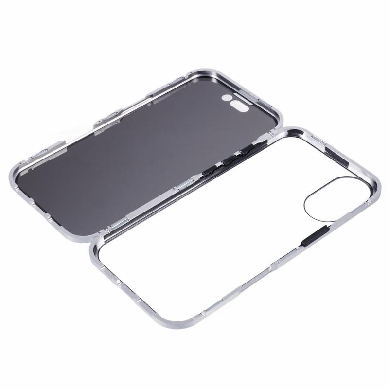 iPhone 16 Magnetiskt Skal med Härdat Glas - Privacy - Silver