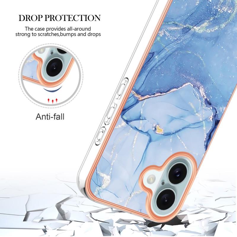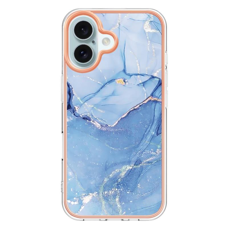 iPhone 16 Marmor Mönster Elektropläterat IMD TPU Skal - Blå