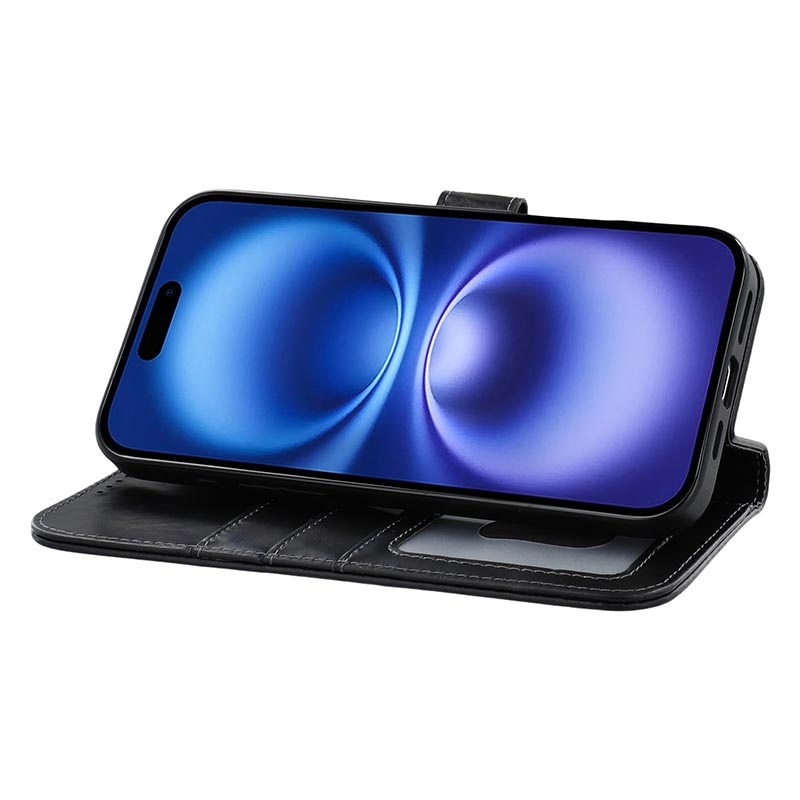 • MyTPhone CardMate Premium läder plånboksfodral för iPhone 16 - Stativ funktion, korthållare, stöd för trådlös laddning, 2x skärmskydd