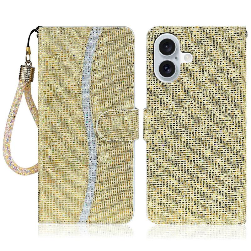 Snyggt plånboksfodral med glitter för iPhone 16