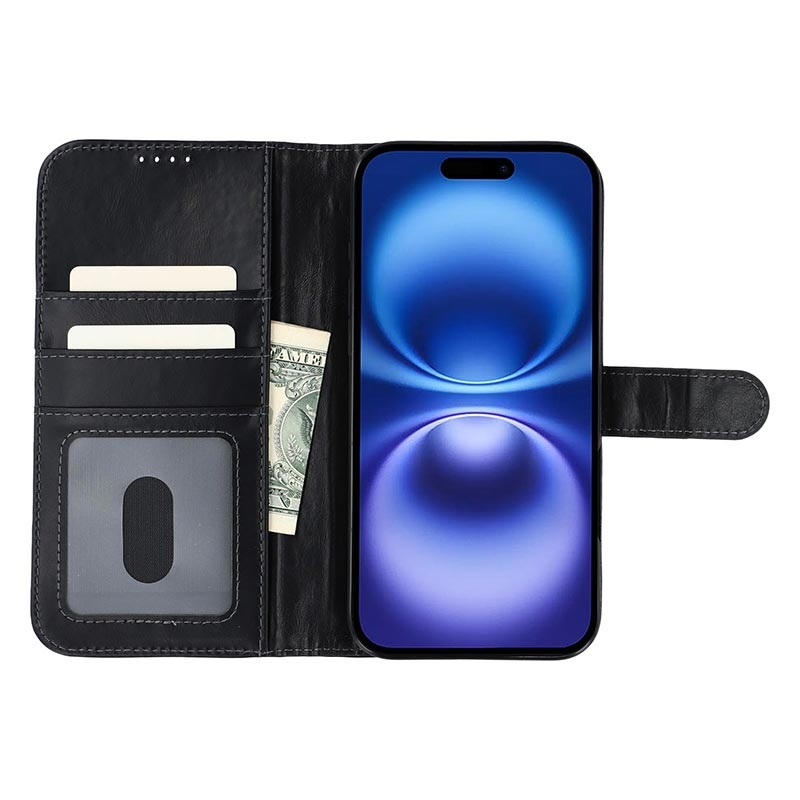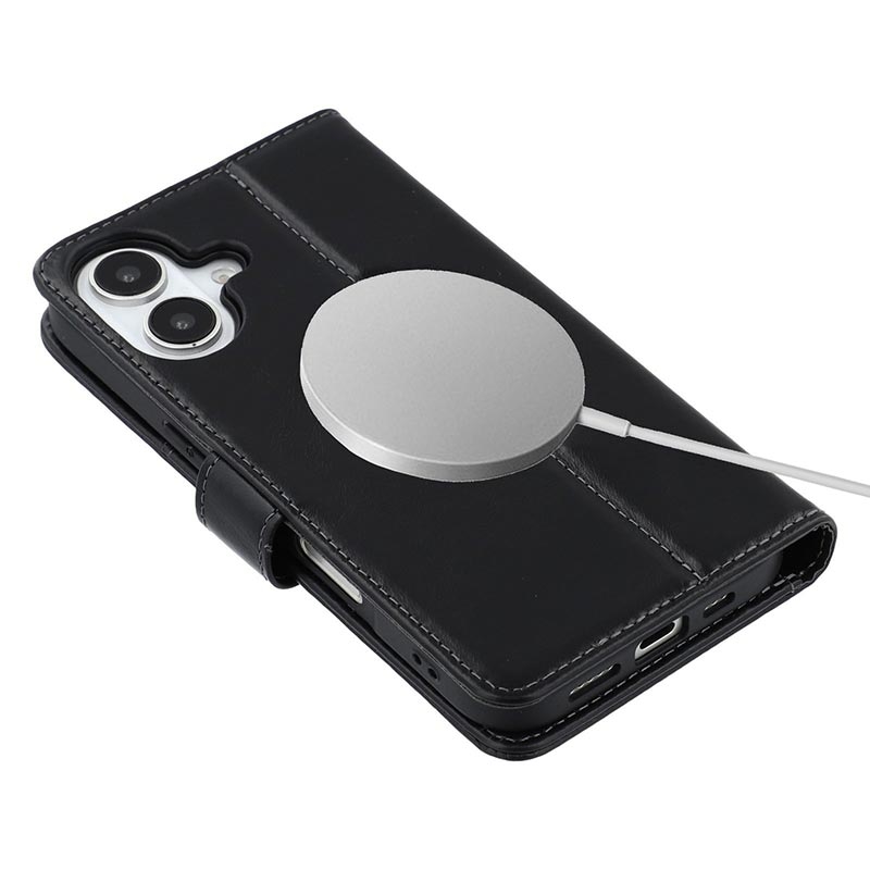 MyTPhone CardMate Premium läder plånboksfodral för iPhone 16 Plus - Stativ funktion, korthållare, stöd för trådlös laddning, 2x skärmskydd