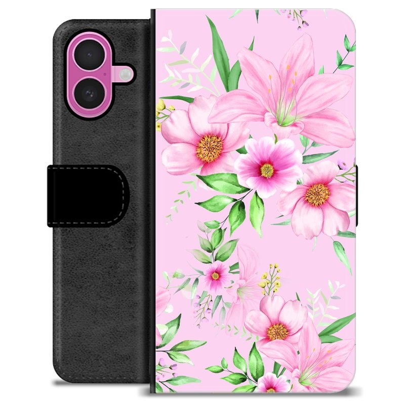 iPhone 16 Plus Premium Plånboksfodral - Vattenfärg Blommor