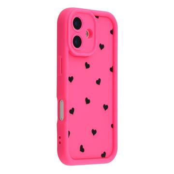 Hjärtmönstrat stötsäkert TPU-skal med förhöjda kanter för iPhone 16 Plus
