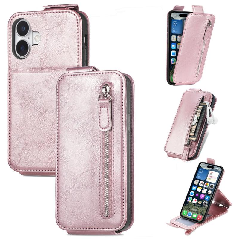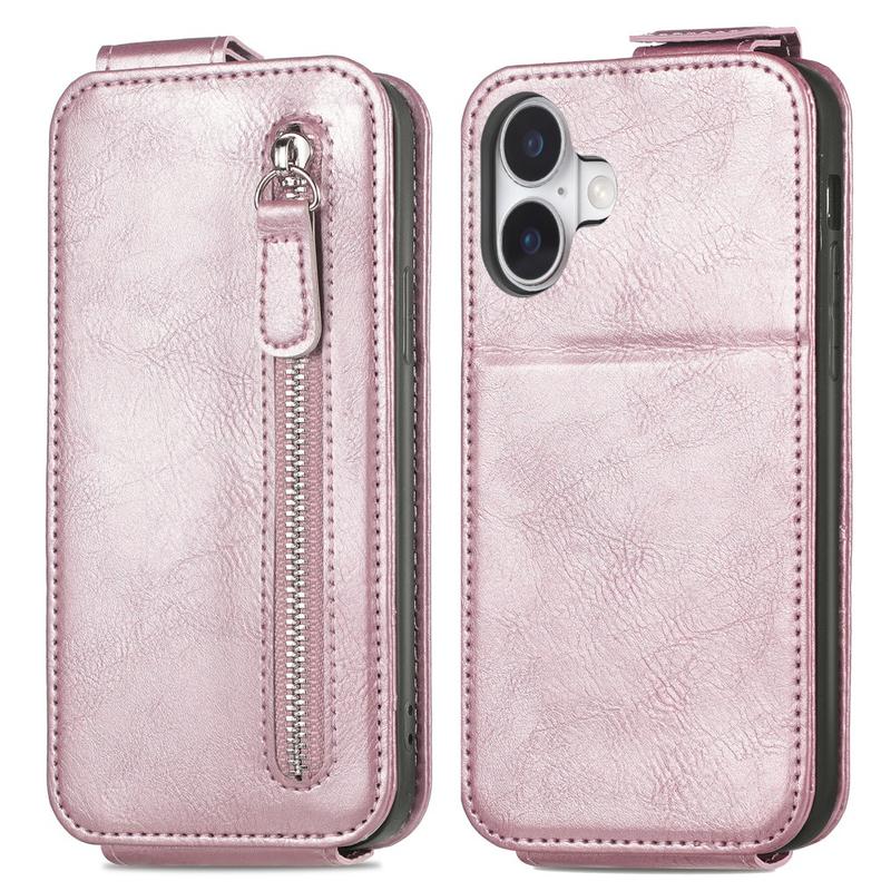 Blixtlåsficka Vertikalt Flip Fodral till iPhone 16 Plus