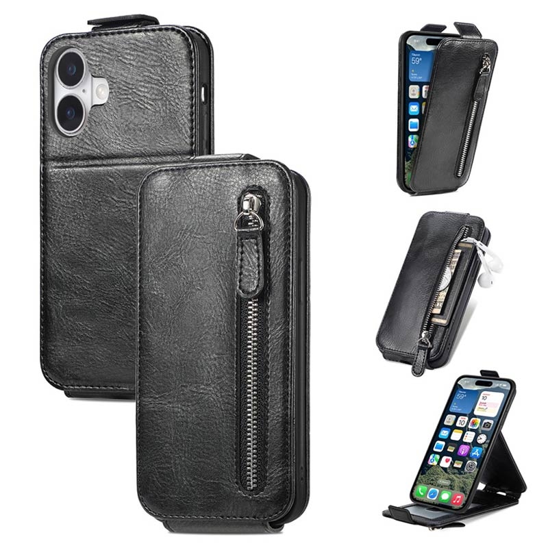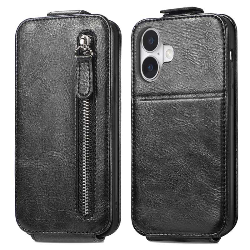 Blixtlåsficka Vertikalt Flip Fodral till iPhone 16 Plus