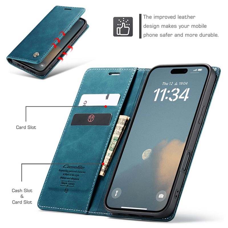 - Inbyggda magneter som ser till att hålla Caseme 013 Series plånboksfodral stängt