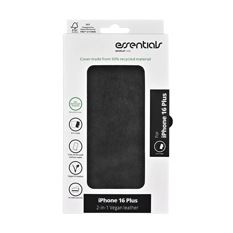 Essentials avtagbart plånboksfodral för iPhone 16 Plus är extremt elegant och mycket praktiskt, tillverkat av förstklassig polyuretan och utgör ett perfekt val för vardagsskydd av din smartphone. Detta 2-i-1 plånboksfodral har ett avtagbart innerskal, så du har full frihet att välja hur du vill bära din smartphone.