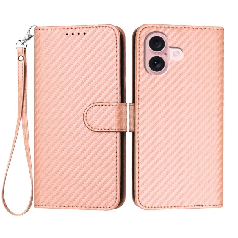 Premium plånboksfodral med rem för iPhone 16 - kolfiberstruktur